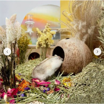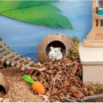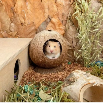 La maison noix de coco est naturelle, elle s'intègrera très bien dans l'habitat de votre hamster.
