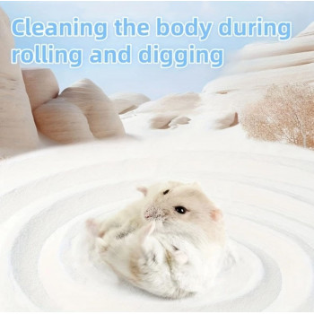 Un sable extra fin de qualité supérieure pour votre hamster ; il appréciera beaucoup nettoyer son pelage dans celui-ci, s'y rouler dedans pour nettoyer son pelage et pourra creuser, comme le font tous les hamsters, pour reproduire l'instinct et le comportement naturel.