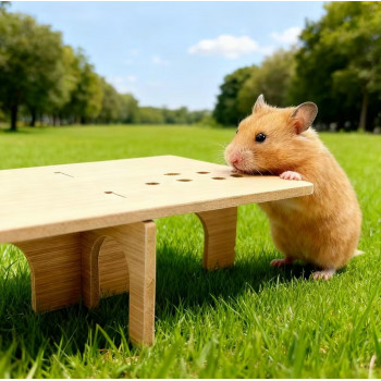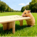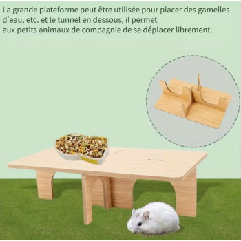 Cette plateforme de jeu en bois naturel pour hamster, est faite à la main.