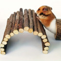 Petit pont en bois naturel, écorce véritable, idéal pour se cacher, grimper et grignoter.