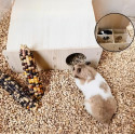 - Elle est équipée de plusieurs entrées qui font penser à un labyrinthe ; votre hamster pourra reproduire son instinct naturel en parcourant les diverses chambres, et pourra accéder à sa litière, tout en creusant des tunnels.
